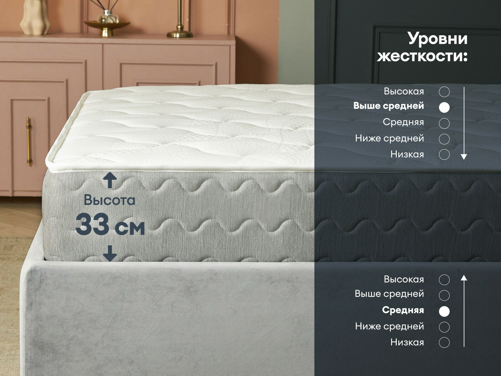 Матрас Димакс Биг Лайт Найт — это высокая пружинная модель с двумя сторонами комфорта. Классический средний уровень жёсткости и увеличенный пружинный блок дают надёжную поддержку и комфорт во время сна. Модель универсальна и подойдёт для удобного отдыха для разных типов фигур и телосложений.