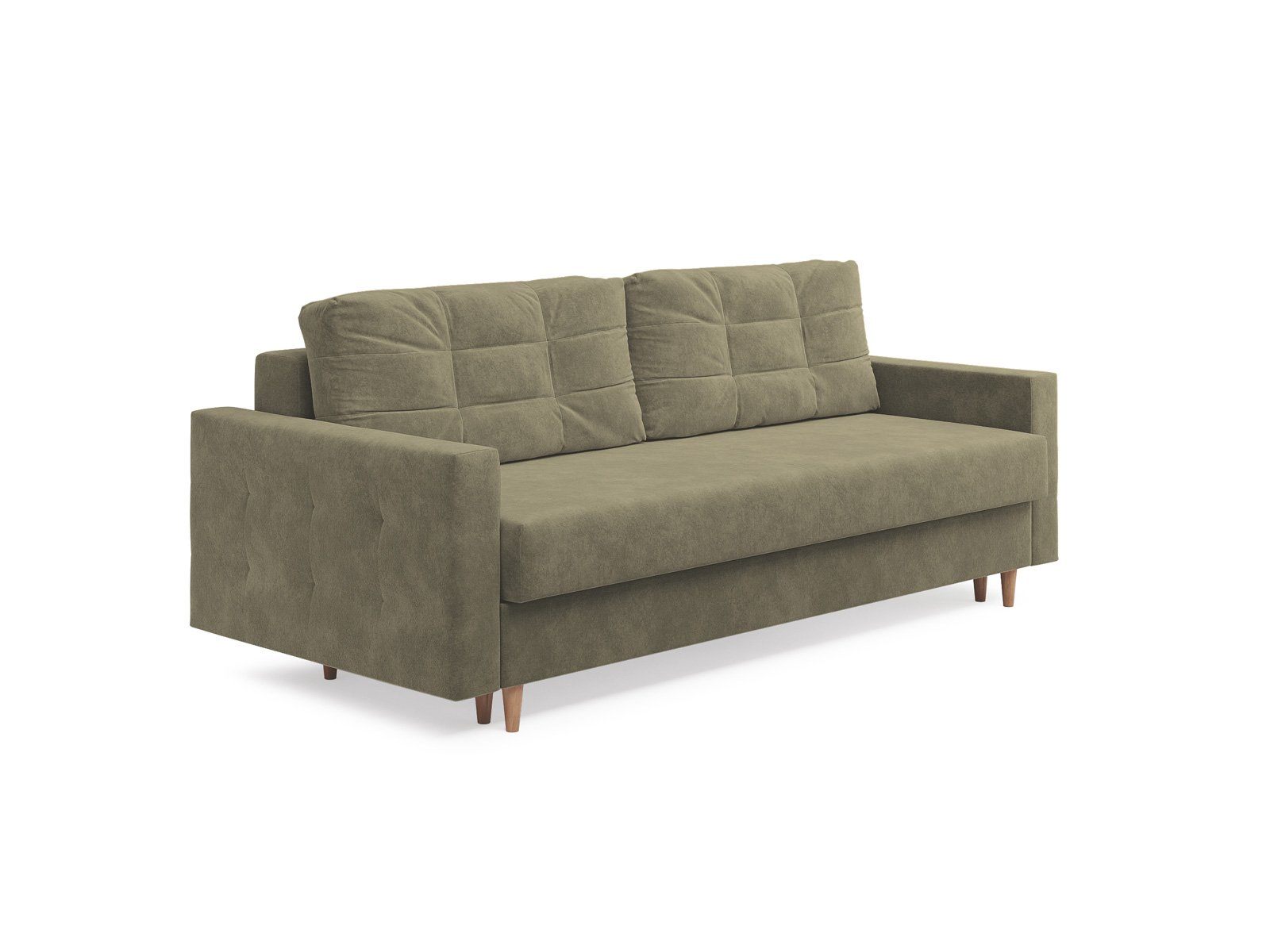 Современный диван Scandy с механизмом трансформации «Пантограф». В основе дивана полноценный ортопедический матрас на независимом пружинном блоке, усиленном слоем натуральной латексированной кокосовой коры. Комфортная глубина и высота сиденья обеспечит ежедневный комфорт. Задняя спинка защищает от прикосновения со стеной во сне, а стену – от возможных повреждений и загрязнений. В основе мягких подушек – микс наполнителей: поролоновая крошка защищает от деформации, а синтетическое волокно добавляет мягкость и упругость – для бережной поддержки спины. Подушки убираются во вместительный бельевой ящик с вентиляционным отверстием в разложенном состоянии дивана. Высокие элегантные опоры из массива (цвет на выбор - бук или венге) упростят уборку и позволяют работать современным роботам-пылесосам.