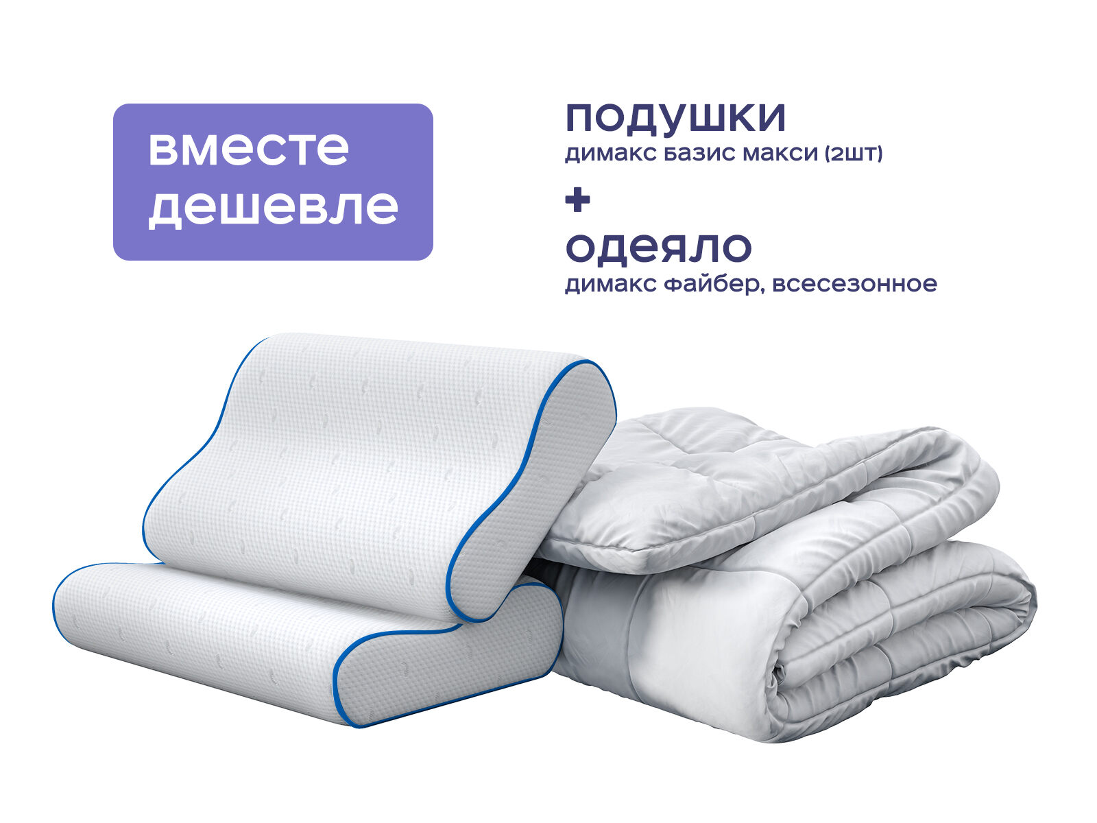 Комплект одеяло Димакс Файбер всесезонное + подушка Базис Макси 2 шт. — идеальный набор для тех, кто ценит инновационный комфорт и заботу о здоровье. Покупая товары для сна набором, вы экономите до 48% и получаете «умное» одеяло с системой терморегуляции и две подушки с волнообразной анатомической формой. Вместе они создают условия для глубокого восстановления, адаптируясь к вашим потребностям в любую погоду.