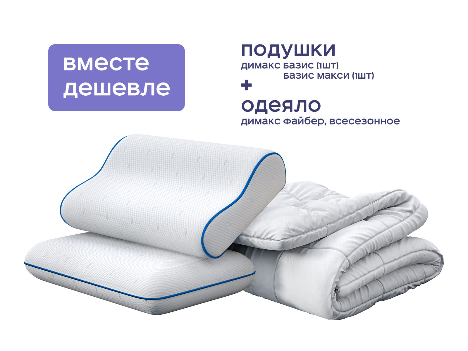 Комплект одеяло Димакс Файбер всесезонное + подушка Базис 1 шт. + подушка Базис Макси 1шт. – уют, здоровье и экономия до 48%. Хотите создать идеальную среду для сна, которая подойдет каждому члену семьи или гармонично дополнит вашу спальню? Выбирайте готовый комплект! В него входит всесезонное одеяло и две анатомические подушки: классической и эргономичной формы. Набор подарит комфорт в любое время года, подстраиваясь под разные предпочтения и потребности.