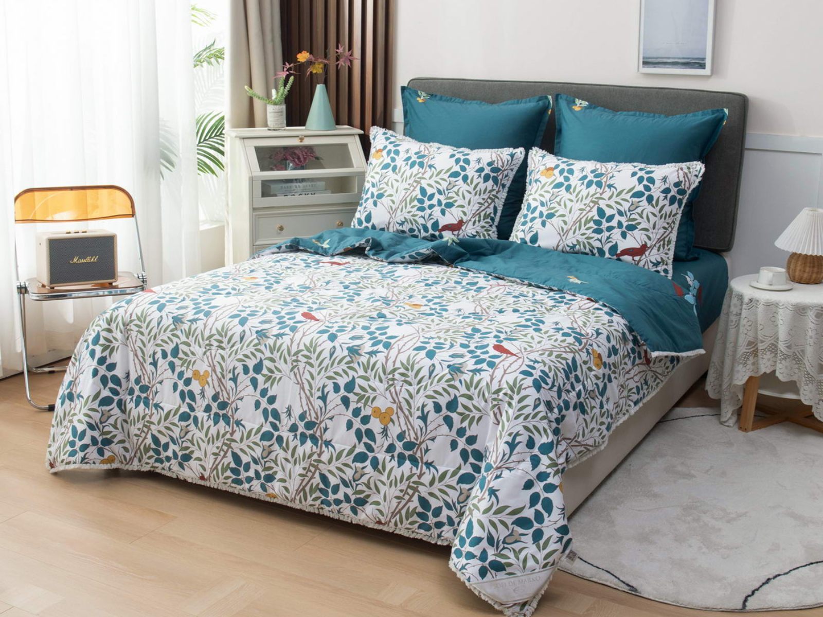 В комплекты комфортеров с одеялом Бернадетт входят наволочки, простыня и легкое всесезонное одеяло. Оцените это современное и очень удобное решение, которое идеально подходит тем, кто не любит возиться с пододеяльниками.