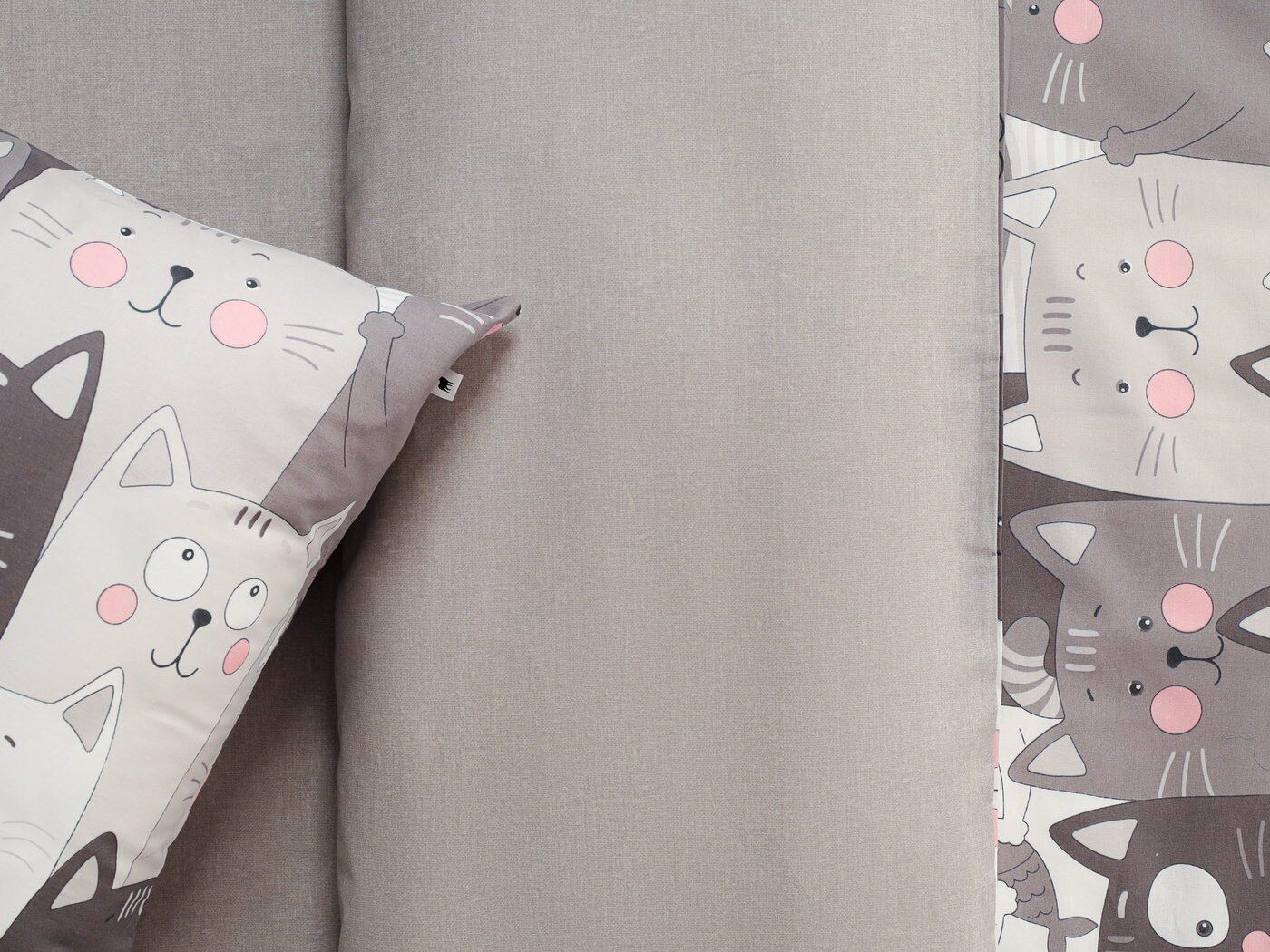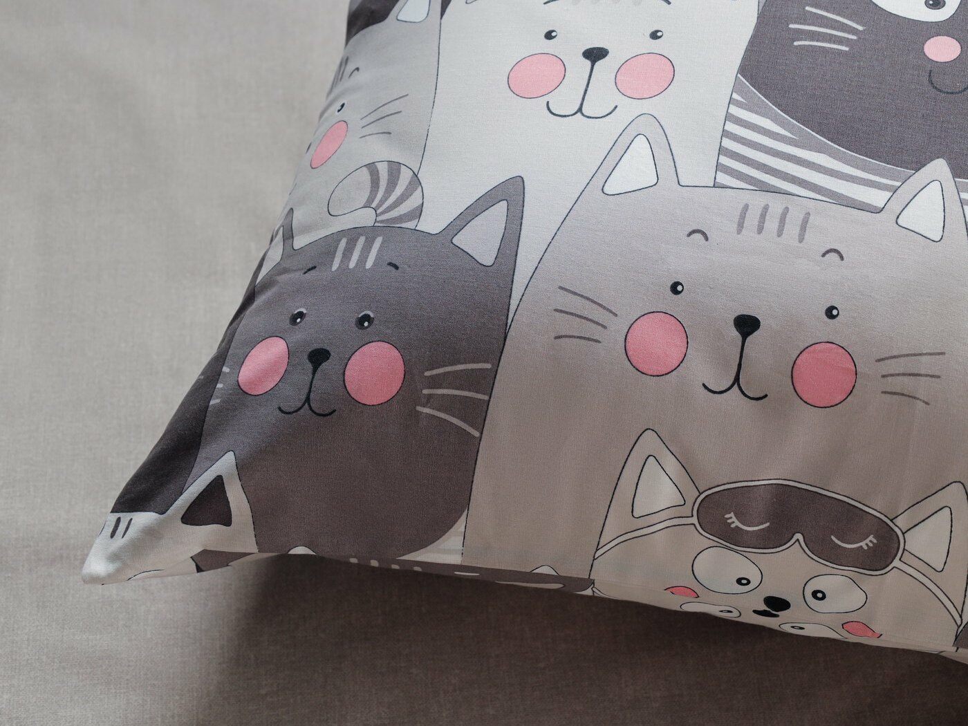 Наволочка – полностью из принтованной ткани, на запахе. Запах широкий, расположен сбоку по стороне 50 см.