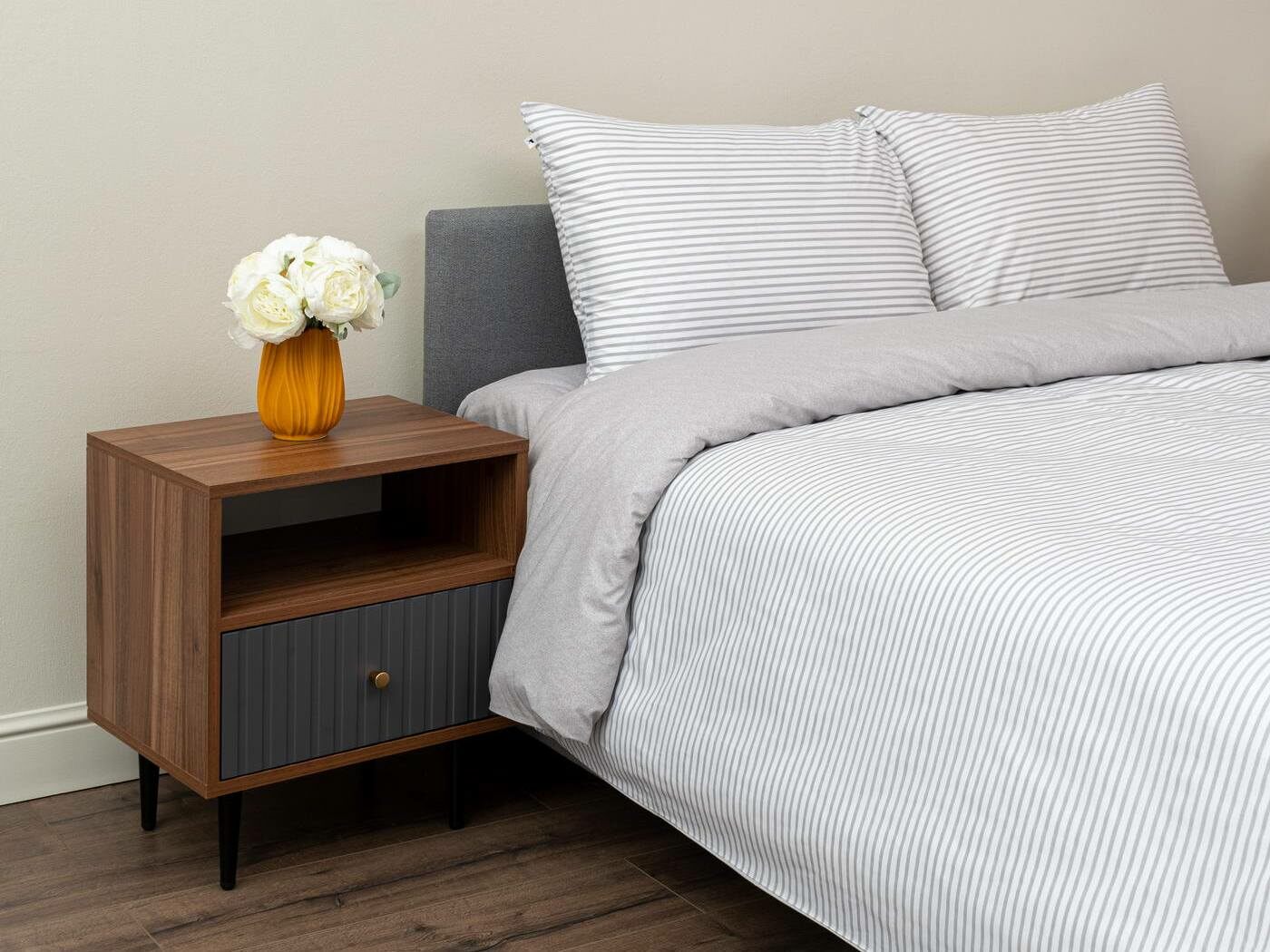 Комплект Мэгги легко стирается в обычной машине в бережном режиме и также легко гладится.