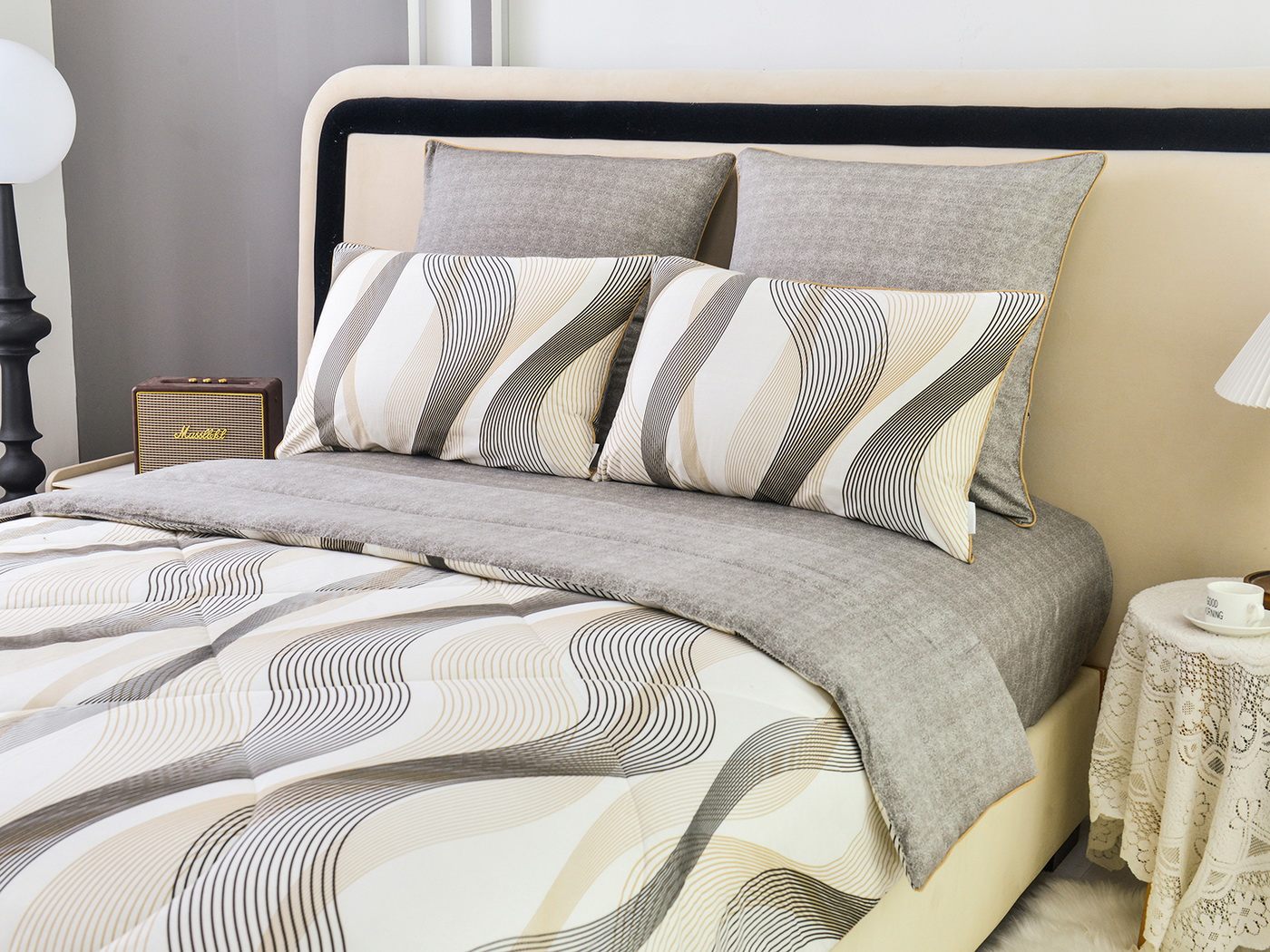 Особенность: двусторонняя модель, наволочки и одеяла декорированы кантом.