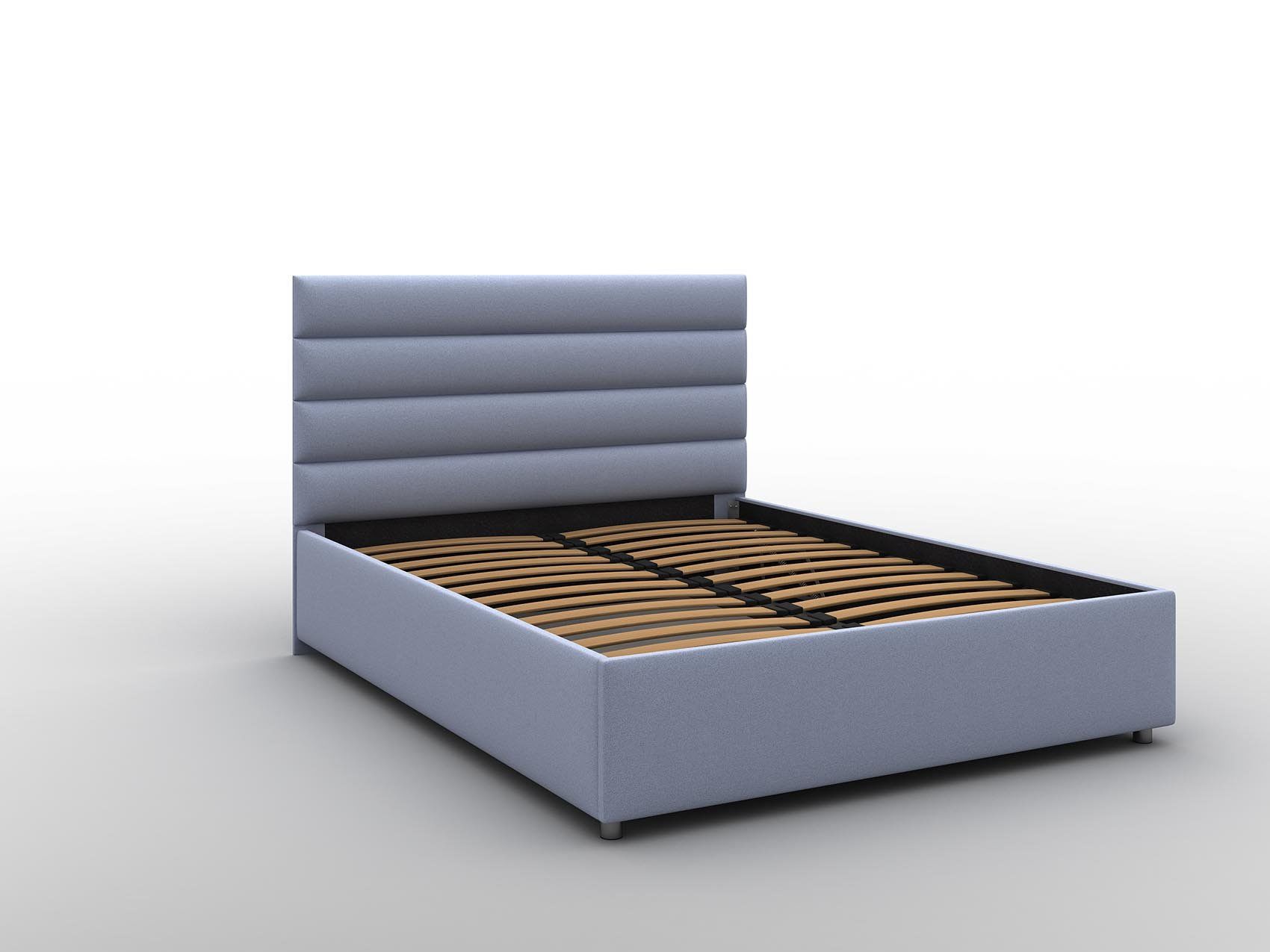 Кровать оснащена подъёмным механизмом. В такой вариации основание поднимается и открывает доступ к ящику для хранения белья и других вещей. Такая система может заменить небольшой шкаф и решить вопрос с организацией пространства.
