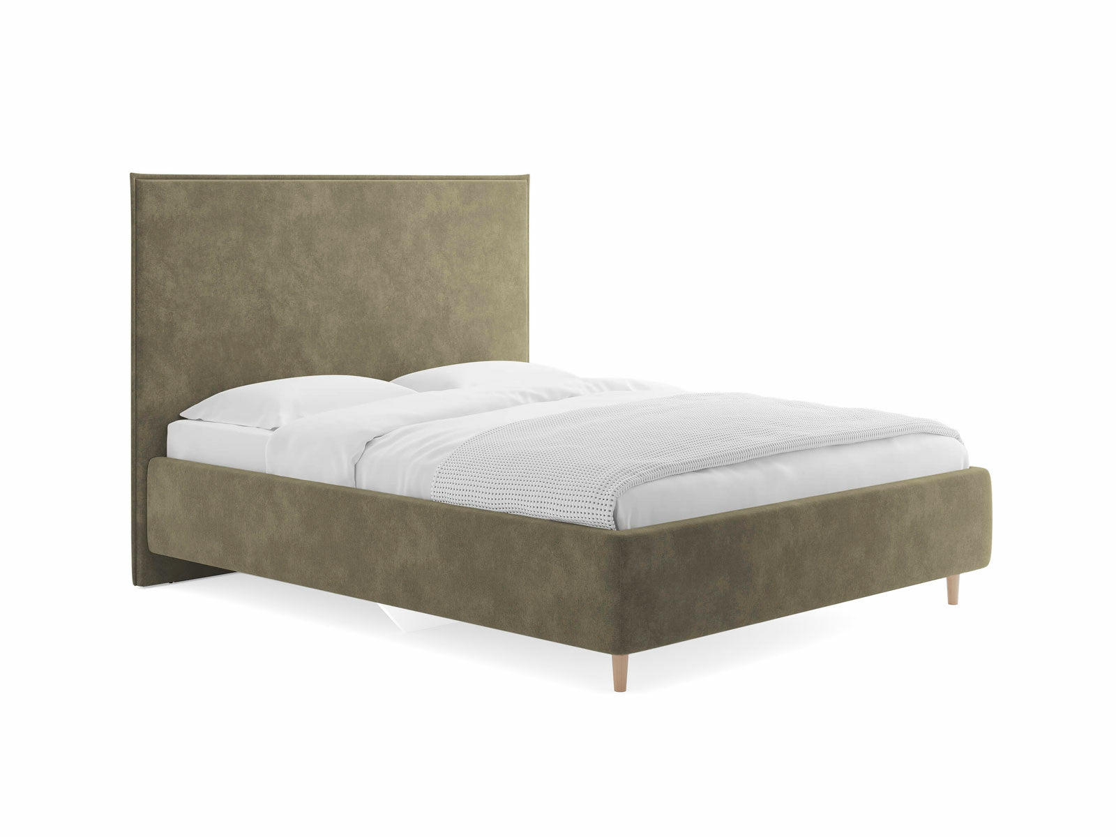 Кровать Eveline для современных интерьеров в скандинавском стиле. Выглядит эффектно благодаря мягкому высокому изголовью с декоративным кантом по периметру и опорам из натурального дерева. Модель будет смотреться выигрышно и актуально в интерьере, делая спальню уютнее, настраивая на отдых.