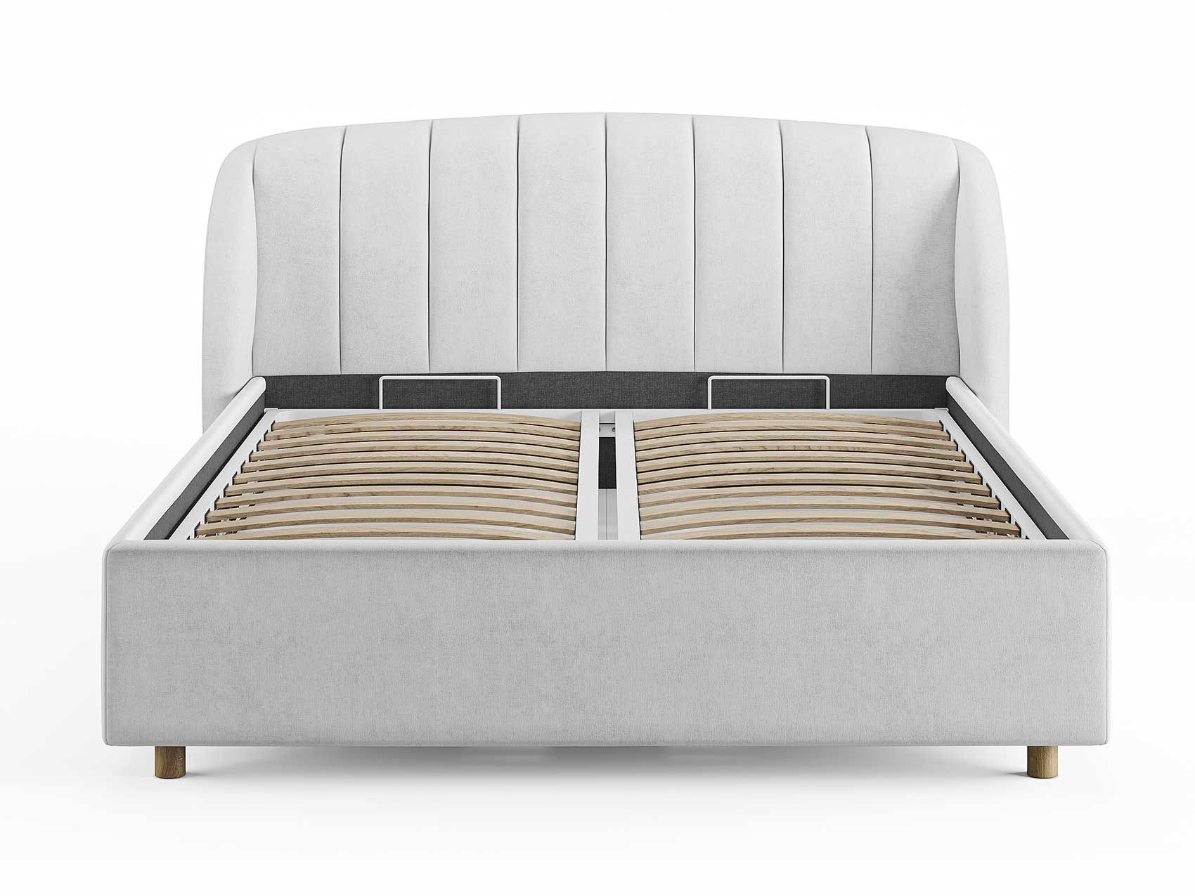 Кровать комплектуется металлическим основанием (без опор), которое имеет 13 рядов встроенных березовых ламелий на каждое спальное место, обеспечивая равномерное распределение нагрузки.
