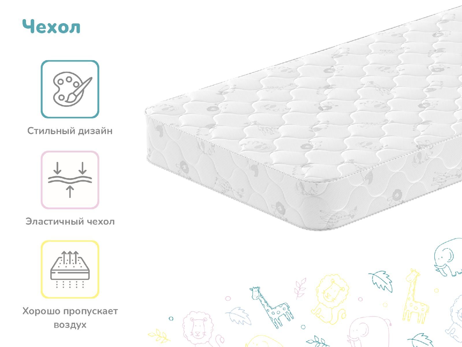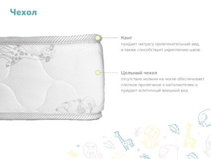 Модель объединяет важные для детского сна аспекты: адекватную ортопедическую поддержку, возможность менять жёсткость всего одним переворотом и безопасность материалов.