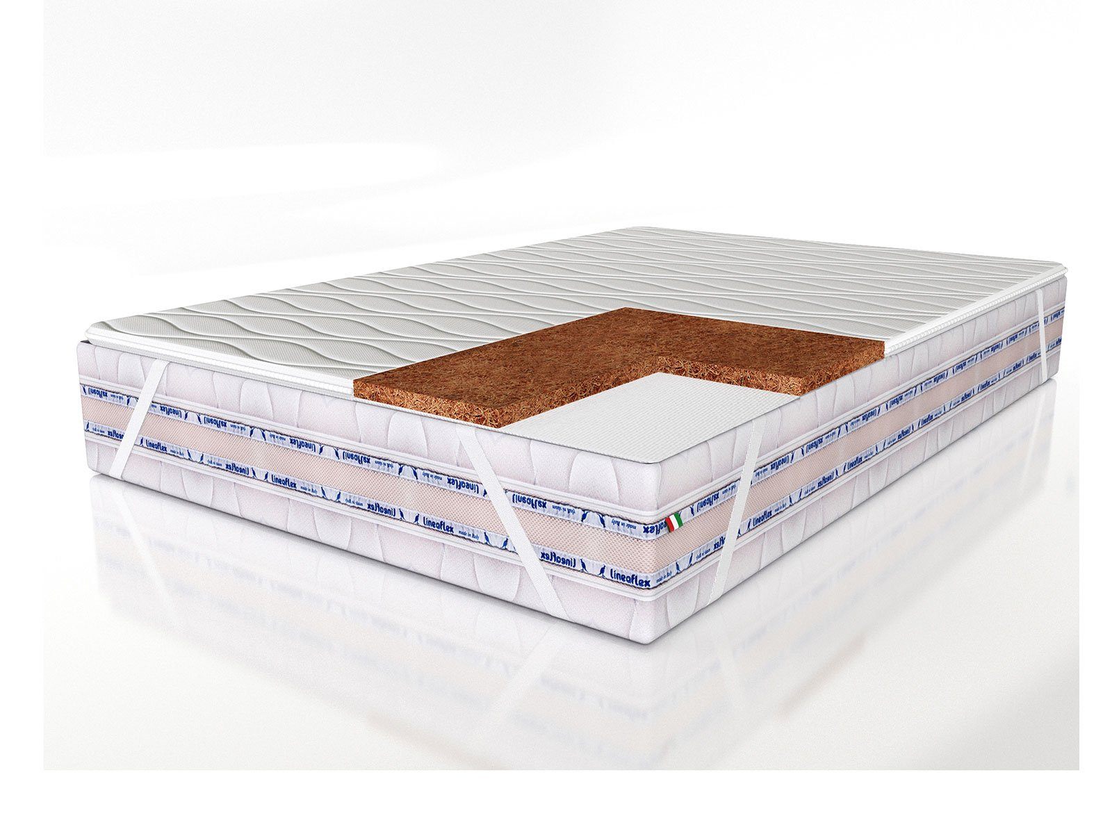 Coirflex – комфортный слой из натуральной кокосовой койры, пропитанный натуральным латексом (50% волокно кокосового ореха, 50% латекса). Гибкий и упругий, обладает ортопедическим эффектом и устойчив к нагрузкам. Придаёт жесткость матрасу.