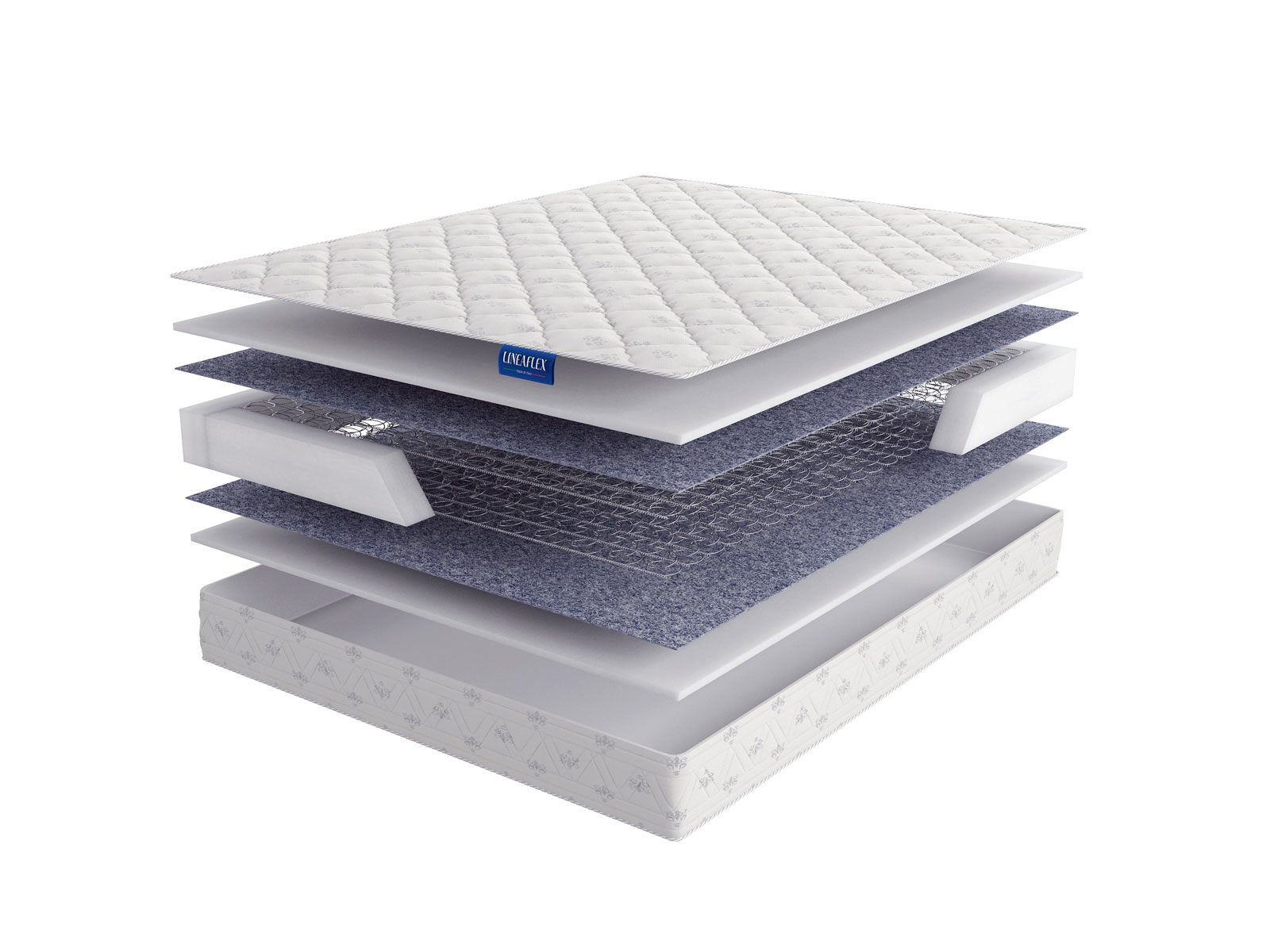 В качестве чехла матраса установлена модель STANDART, которая изготавливается из мягкого, но при этом очень прочного хлопкового жаккарда. Для того чтобы все стороны спальной принадлежности обрели красивый рельеф, в комплект к ткани добавлена объёмная подложка из файбера. Слои соединены сложной стёжкой, образуя очень комфортную обивку.