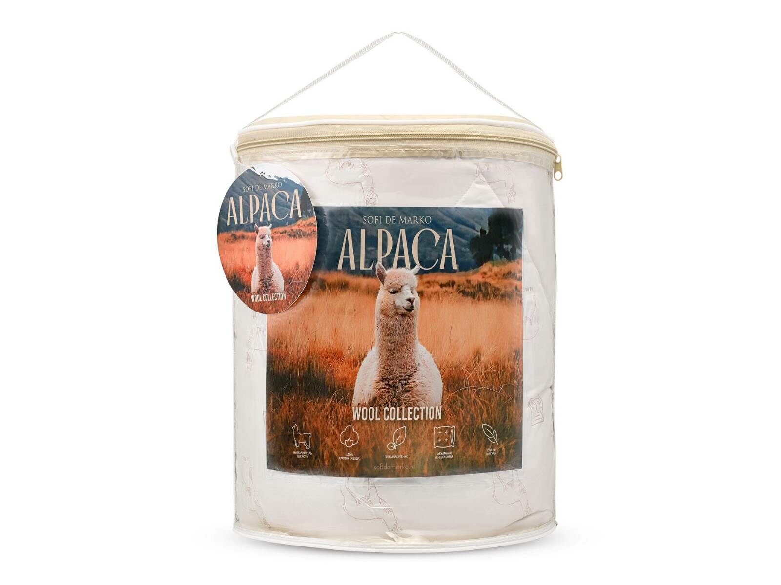 Наполнитель одеяла: 60% шерсть альпака, 20% искусственный лебяжий пух, 20% силиконизированное волокно
