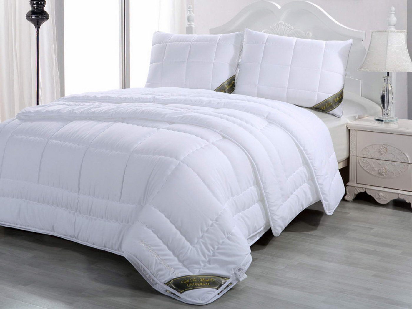 Идеальное одеяло для любого времени года! Для весны и лета - используйте одно одеяло, отстегнув его от другого. Для зимы и осени - соедините. Благодаря удобным креплениям соединять и разъединять их очень легко. Наполнитель из микроволокна гигроскопичен - поглощает влагу и быстро выводит ее наружу, обладает высокой износоустойчивостью и прочностью, хорошо сохраняет форму. Сочетание гигроскопичности
