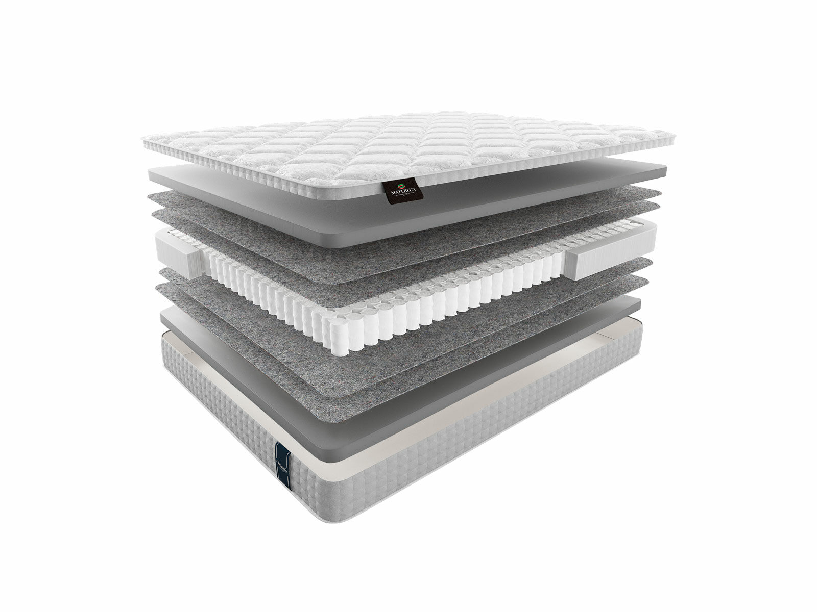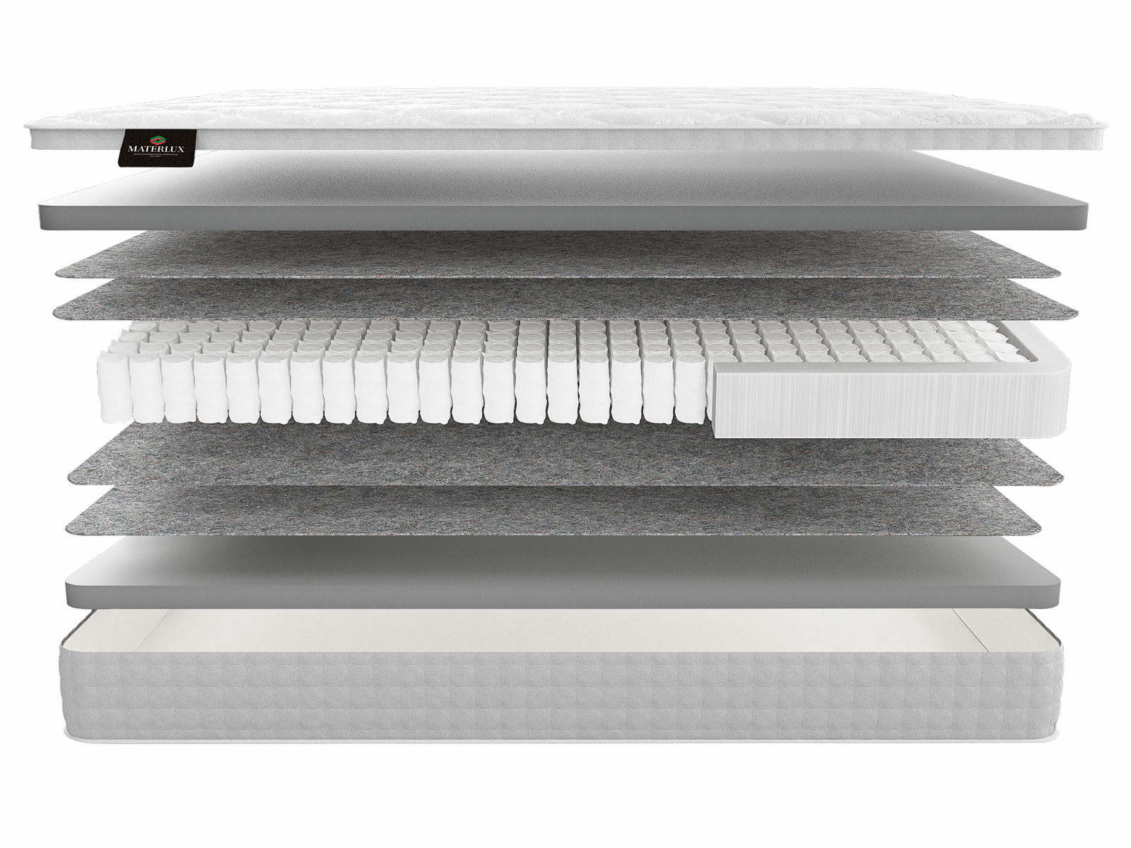 Термофиксированный фетр (500 гр./кв. м; 0,5 см): этот натуральный материал служит в качестве надежной изоляции между пружинами и внешними слоями матраса, обеспечивая дополнительную прочность и комфорт.
