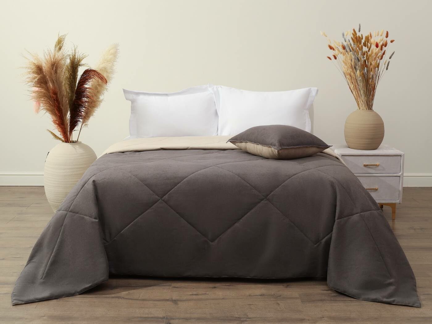 Превратите свой дом в пространство роскоши и комфорта. Откройте дверь в мир премиального уюта. Представьте себе момент, когда вы касаетесь ткани, которая словно создана для ваших рук. Коллекция «Нолан» – это именно та роскошь, которую вы заслуживаете. Каждое изделие – это произведение искусства, где безупречное качество встречается с доступной ценой. Магия бархатного прикосновения. Бархатистый канвас – это не просто ткань, это ваша новая страсть. Его изысканная текстура создает неповторимую атмосферу уюта, а премиальное качество 100% вискозы делает каждое прикосновение особенным. Инновации, которые меняют правила игры. Двусторонняя конструкция – это революция в мире домашнего текстиля. Теперь вы можете менять облик вашей спальни или гостиной, не тратя лишних средств. Два дизайна в одном изделии – это свобода выбора каждый день! Универсальная стежка «крупный ромб» станет идеальным компаньоном для любого интерьера. Классический дизайн, который никогда не выйдет из моды, подчеркнет ваш безупречный вкус.