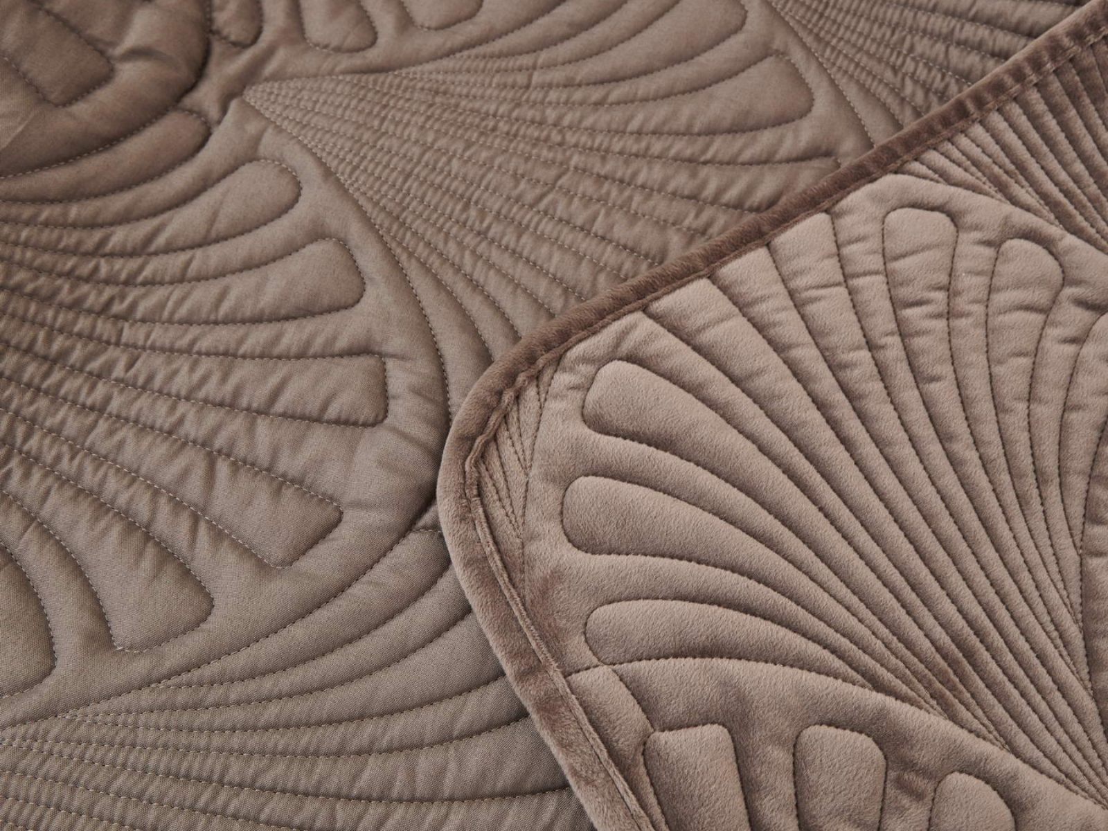 Роскошное велюровое покрывало Ариэль станет изюминкой любого интерьера, ведь оно потрясающе выглядит и приятное на ощупь. Обратите внимание на стежку покрывала – она выполнена в виде ракушек с эффектом 3D. Из-за особого плетения, велюровая ткань покрывала отражает свет и красиво переливается при различном освещении.