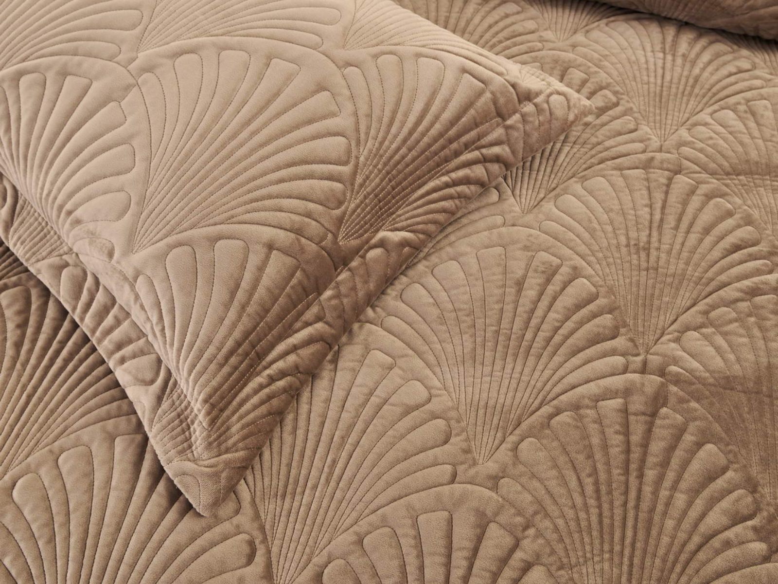 Роскошное велюровое покрывало Ариэль станет изюминкой любого интерьера, ведь оно потрясающе выглядит и приятное на ощупь. Обратите внимание на стежку покрывала – она выполнена в виде ракушек с эффектом 3D. Из-за особого плетения, велюровая ткань покрывала отражает свет и красиво переливается при различном освещении.