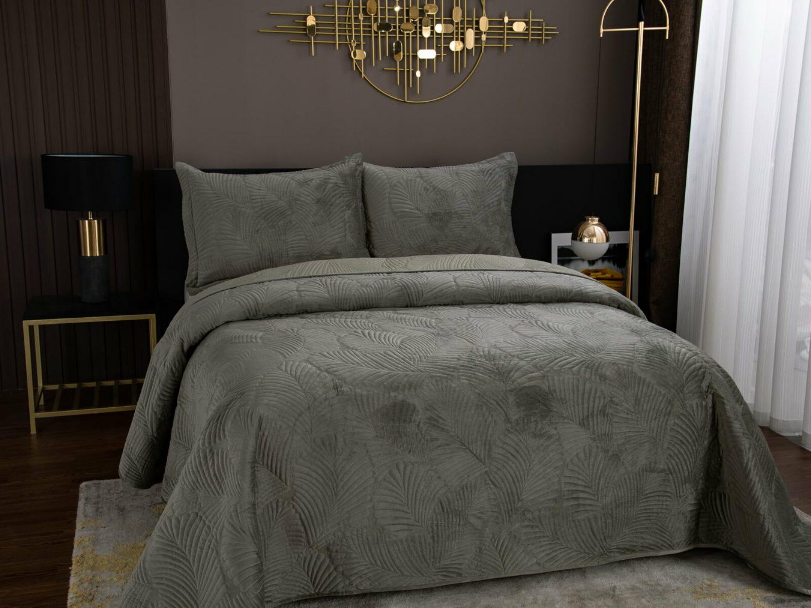 На создание велюрового покрывала Ноэль наших дизайнеров вдохновила ночь в середине лета, когда на раскаленную от жары землю спускается долгожданная прохлада. Роскошная вышивка в виде пальмовых листьев будет напоминать о тени, которую отбрасывают деревья.