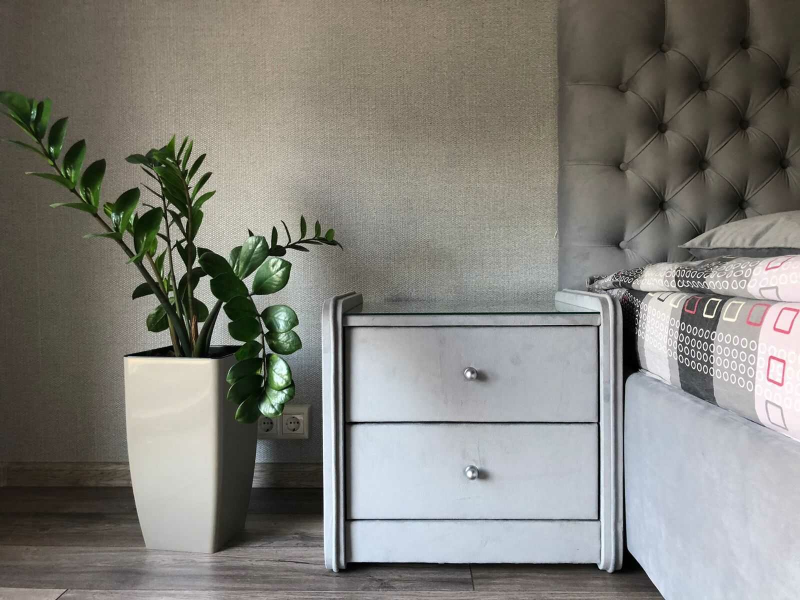 Тумба прикроватная Сандрига выполнена в изысканном классическом стиле. Обивка из высококачественного материала придает мебели особый шарм. Модель легко впишется в современные интерьеры и станет практичным дополнением меблировки спальни. На стеклянной столешнице расположится ночник, книга или чашка чая, а для необходимых под рукой мелочей предусмотрены два выдвижных ящика с ручками.