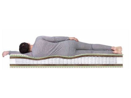 Матрас Space Massage TFK относится к симметричным моделям, то есть наполнение одинаковое с каждой стороны. Первый слой - это бикокос - жесткий и прочный материал на основе кокосового волокна, придающий матрасу среднюю жесткость и продлевающий срок его службы. Второй слой - пена Ergo Foam - высокоэластичный и мягкий материал с прекрасным воздухообменом и рельефной поверхностью. Этот внешний слой призван повысить комфортность матраса, а микромассажный эффект способствует полной релаксации во время сна. Посередине расположен блок независимых пружин TFK, придающий матрасу отличные ортопедические свойства, так как при нагрузке продавливается только конкретный участок, а соседние пружины не реагируют, что позволяет спящему принять удобное и полезное для позвоночника положение. Общая высота модели Space Massage TFK составляет 24 см, а максимальная нагрузка на одно спальное место - 110 кг. Дополнительный комфорт матрасу придает мягкий жаккардовый чехол.