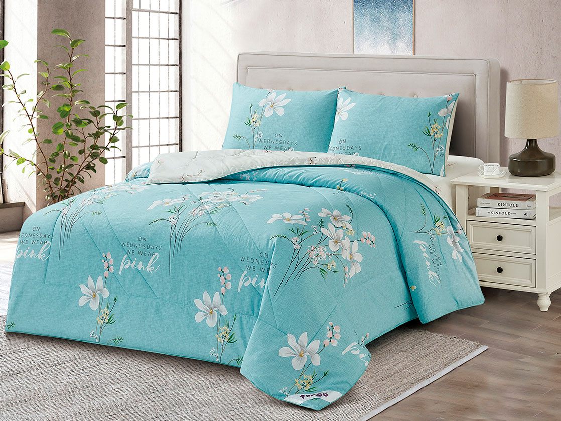 В данный комплект вместо пододеяльника входит облегченное одеяло. Комплект подойдет тем, кто устал от мучительного натягивания пододеяльников на одеяло.